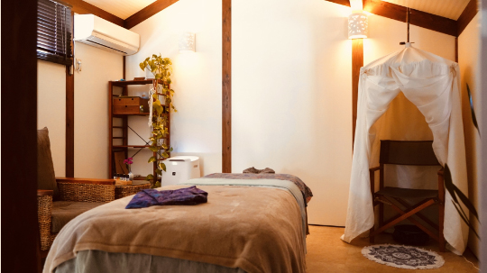 スパルームでは、お着替えやお茶の時間等、ごゆっくりお過ごし下さい。